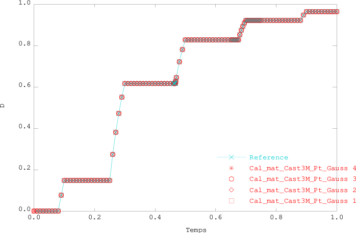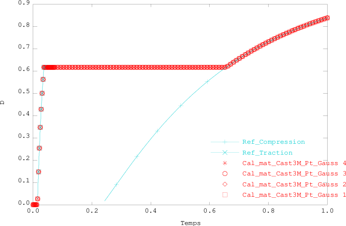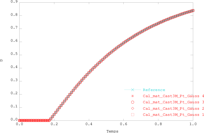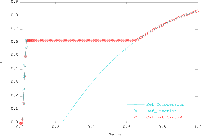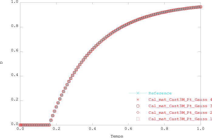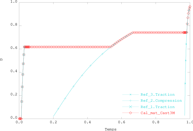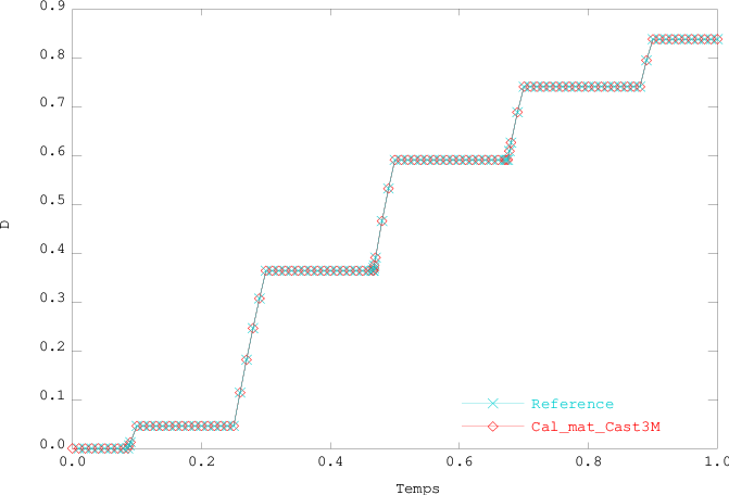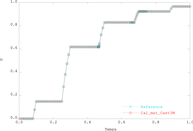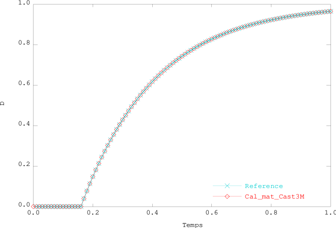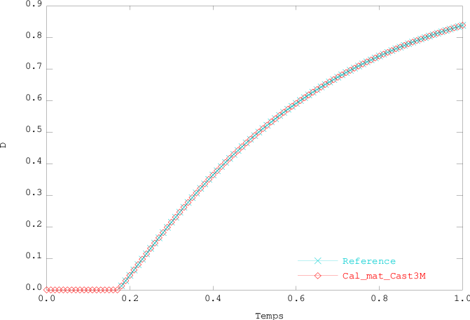 La solution de référence est obtenue de manière analytique à partir de l'équation donnant la loi de l'évolution de l'endommagement en traction.