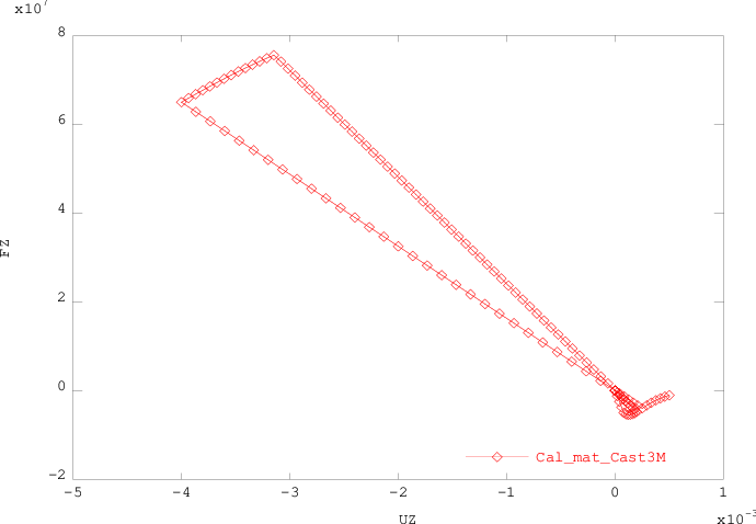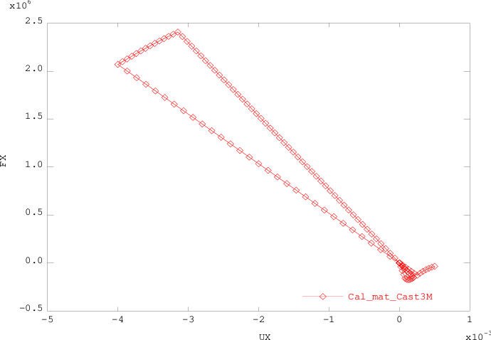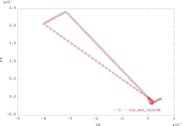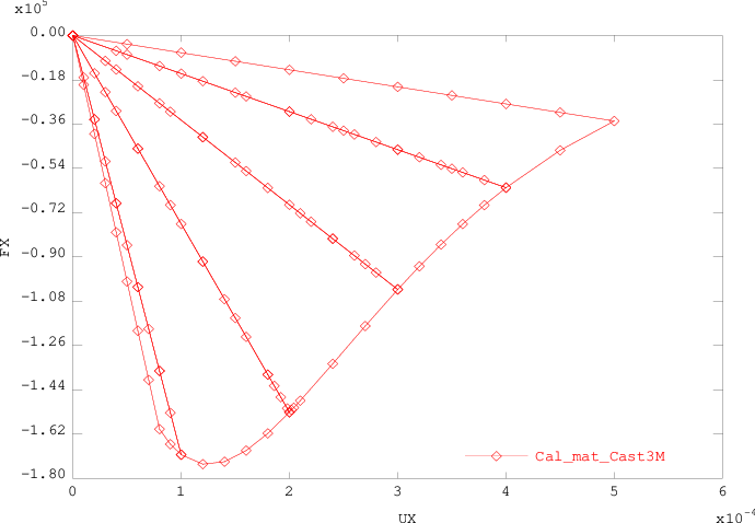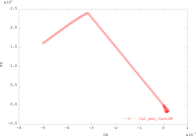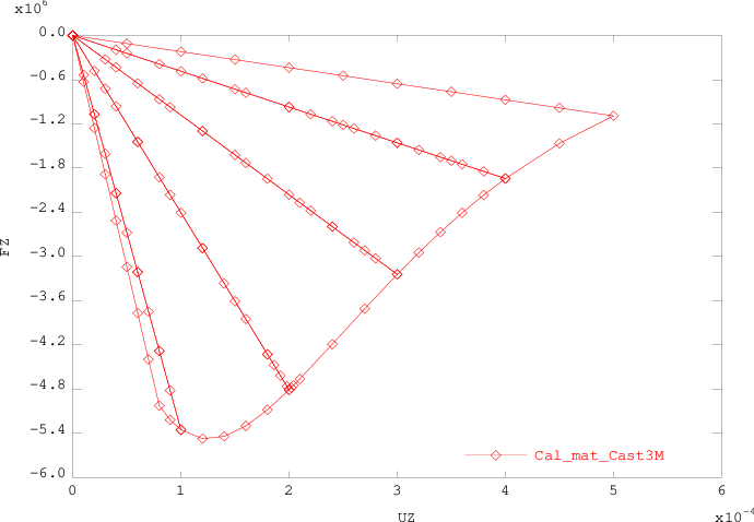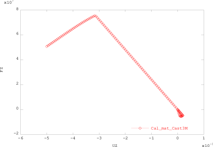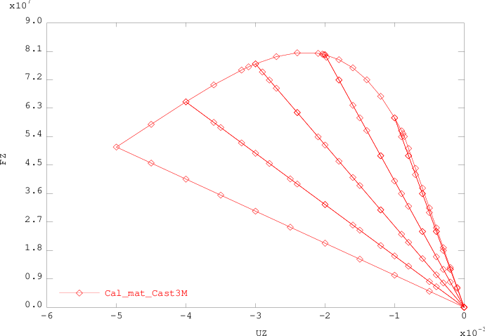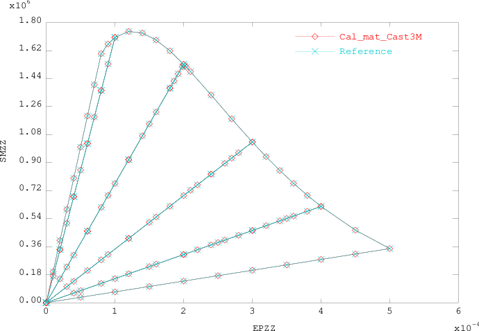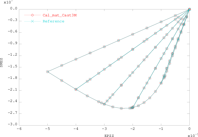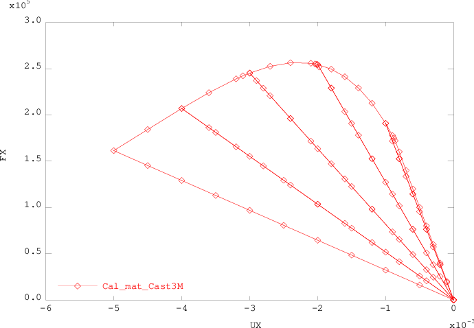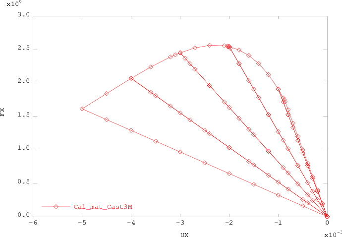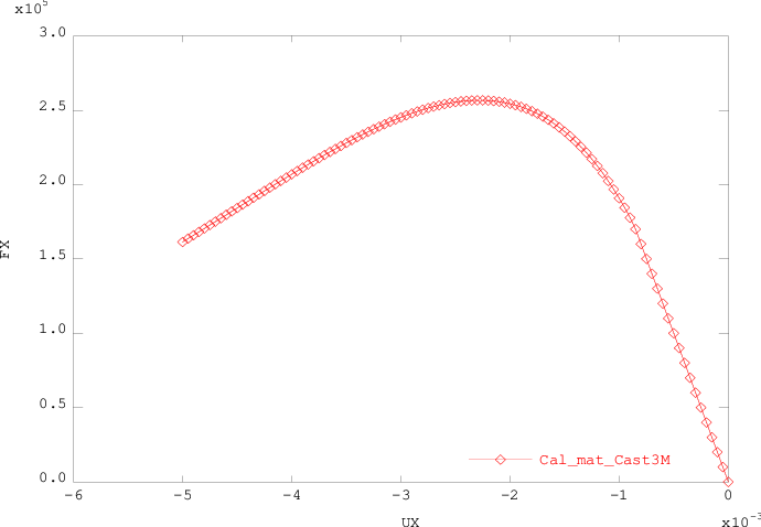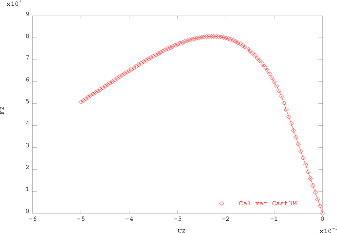 Cette solution de référence est obtenue dans les conditions de calcul suivantes qui sont comparées à celle du cas-test mazars_biaxial.dgibi dénommé "calcul standard" :